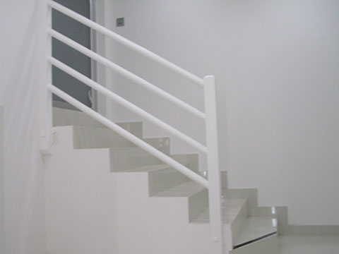 Escaleras y barandillas lacadas.